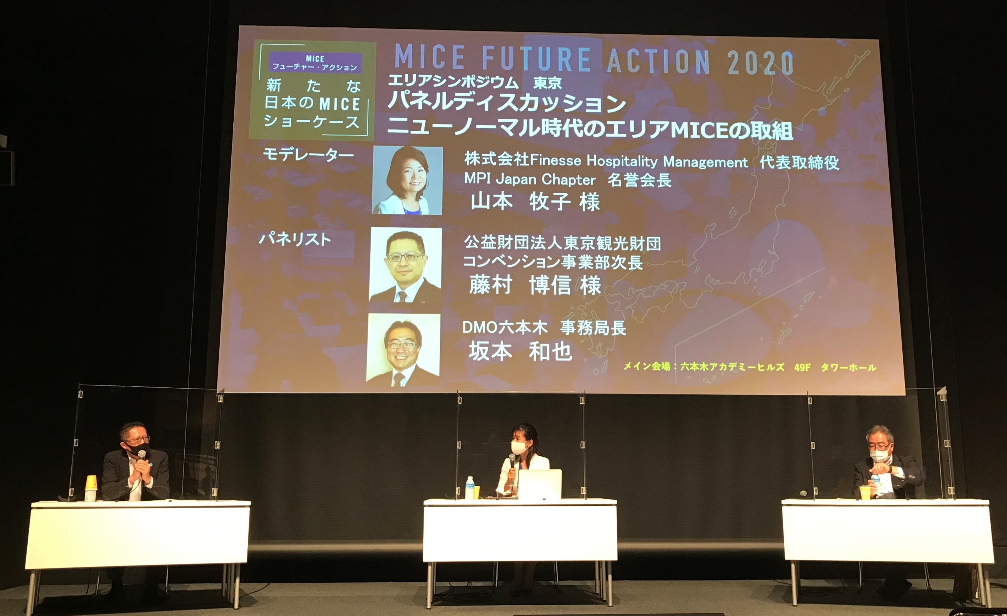 A panel discussion, titled “Areas for Business Events Initiatives in the New Normal Era,” was moderated by Ms. Yamamoto, Honorary Japan chapter Chair, Japan chapter of Meeting Professionals International, and President of Finesse Hospitality Management Co., Ltd., who represented meeting planners of Japan. The discussion included the following panelists: Mr. Fujimura, Director of the Business Events Team in the Tokyo Convention & Visitors Bureau, and Mr. Sakamoto, Executive Director of DMO Roppongi. They discussed the daily efforts of DMO Roppongi in the area of Business Events.