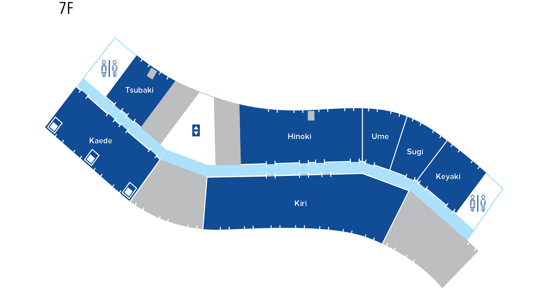 | Room ( )* | Floor | sq. m | sq. ft. | Ceiling ht. (m) | Theater | Classroom | Hollow Square | Reception | Banquet |