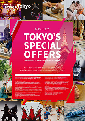 * Some errors have occurred. Please check your entries. We hope you will find our resources useful in attracting and hosting business events. * = required Please select the document you wish to download. * File not selected. First Name * First Name is required. Last Name * Last Name is required. Title * Prof Dr Mr Mrs Ms Title is required. Company / Organization * Company/Organization is required. Nature of Business * Select Academic Institution/Association Corporation Professional Conference Organizer (PCO) Professional Exhibition Organizer (PEO) Event Organizer/Planner (Independent) DMC Venue Finder Facility (Venue/Hotel) Government Agency Media Meeting Planner Other Nature of Business is required. Email Address * Email is required. Country * Select Afghanistan Aland Islands Albania Algeria American Samoa Andorra Angola Anguilla Antarctica Antigua and Barbuda Argentina Armenia Aruba Australia Austria Azerbaijan Bahamas Bahrain Bangladesh Barbados Belarus Belgium Belize Benin Bermuda Bhutan Bolivia Bonaire, Sint Eustatius and Saba Bosnia and Herzegovina Botswana Bouvet Island Brazil British Indian Ocean Territory Brunei Bulgaria Burkina Faso Burundi Cambodia Cameroon Canada Cape Verde Cayman Islands Central African Republic Chad Chile China Christmas Island Cocos (Keeling) Islands Colombia Comoros Congo Cook Islands Costa Rica Cote d’ivoire (Ivory Coast) Croatia Cuba Curacao Cyprus Czech Republic Democratic Republic of the Congo Denmark Djibouti Dominica Dominican Republic Ecuador Egypt El Salvador Equatorial Guinea Eritrea Estonia Ethiopia Falkland Islands (Malvinas) Faroe Islands Fiji Finland France French Guiana French Polynesia French Southern Territories Gabon Gambia Georgia Germany Ghana Gibraltar Greece Greenland Grenada Guadaloupe Guam Guatemala Guernsey Guinea Guinea-Bissau Guyana Haiti Heard Island and McDonald Islands Honduras Hong Kong Hungary Iceland India Indonesia Iran Iraq Ireland Isle of Man Israel Italy Jamaica Japan Jersey Jordan Kazakhstan Kenya Kiribati Kosovo Kuwait Kyrgyzstan Laos Latvia Lebanon Lesotho Liberia Libya Liechtenstein Lithuania Luxembourg Macao Macedonia Madagascar Malawi Malaysia Maldives Mali Malta Marshall Islands Martinique Mauritania Mauritius Mayotte Mexico Micronesia Moldava Monaco Mongolia Montenegro Montserrat Morocco Mozambique Myanmar (Burma) Namibia Nauru Nepal Netherlands New Caledonia New Zealand Nicaragua Niger Nigeria Niue Norfolk Island North Korea Northern Mariana Islands Norway Oman Pakistan Palau Palestine Panama Papua New Guinea Paraguay Peru Phillipines Pitcairn Poland Portugal Puerto Rico Qatar Reunion Romania Russia Rwanda Saint Barthelemy Saint Helena Saint Kitts and Nevis Saint Lucia Saint Martin Saint Pierre and Miquelon Saint Vincent and the Grenadines Samoa San Marino Sao Tome and Principe Saudi Arabia Senegal Serbia Seychelles Sierra Leone Singapore Sint Maarten Slovakia Slovenia Solomon Islands Somalia South Africa South Georgia and the South Sandwich Islands South Korea South Sudan Spain Sri Lanka Sudan Suriname Svalbard and Jan Mayen Swaziland Sweden Switzerland Syria Taiwan Tajikistan Tanzania Thailand Timor-Leste (East Timor) Togo Tokelau Tonga Trinidad and Tobago Tunisia Turkey Turkmenistan Turks and Caicos Islands Tuvalu Uganda Ukraine United Arab Emirates United Kingdom United States United States Minor Outlying Islands Uruguay Uzbekistan Vanuatu Vatican City Venezuela Vietnam Virgin Islands, British Virgin Islands, US Wallis and Futuna Western Sahara Yemen Zambia Zimbabwe Country is required. Event Name Number of Attendees I would like to receive occasional updates from Tokyo Business Events Team Tokyo Convention & Visitors Bureau does not sell trial user, subscriber, or prospective customer information to third-party marketing companies. Please see our Privacy Policy for more information. I accept the privacy policy SUBMIT